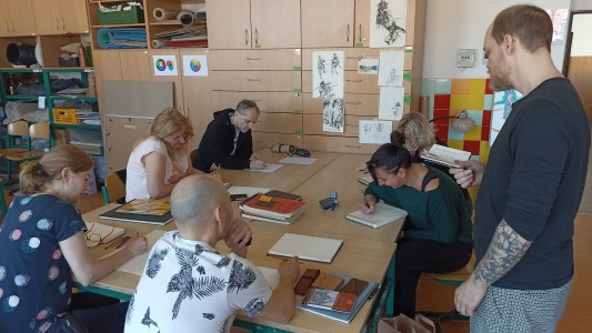 Umělci Václav Kovář a Adam Windsor, vedli o víkendu workshopy v naší ZUŠ. Před tím, než došlo na víkend, který byl určený pedagogům a zájemcům z řad veřejnosti, zavítali i mezi naše žáky a osvětlili jim, proč je důležité umění, a jaké umění je dobře skicovat! Tož jsme zase o krůček dále...